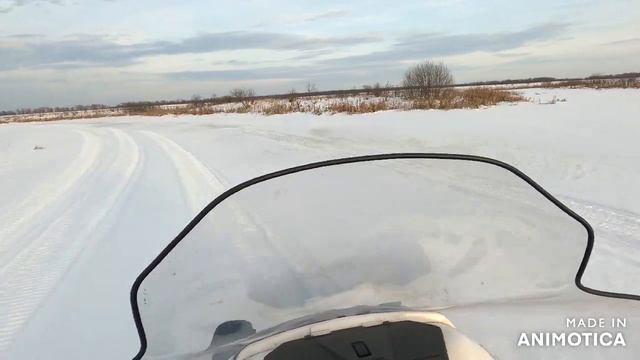 Мчимся по реке на снегоходе STELS VIKING 600