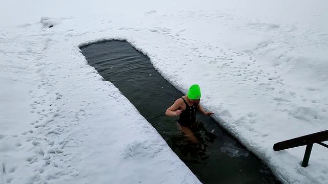 Моржевание, закаливание в проруби на озере Южном в Черноголовке, при сильном ветре и снегопаде.