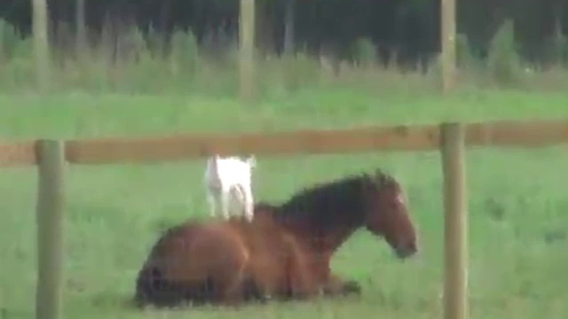 Козлёнок делает лошади массаж