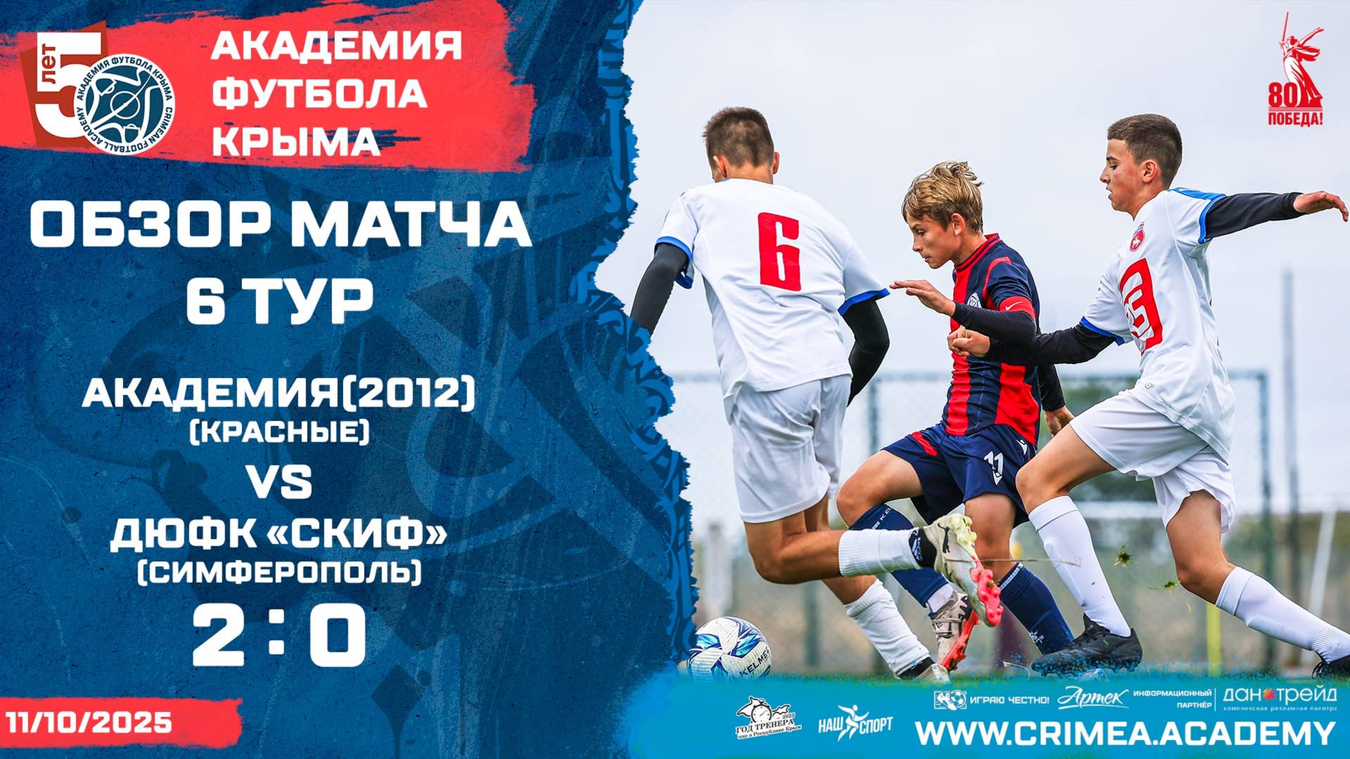 Обзор матча шестого тура Открытого первенства детско-юношеской футбольной лиги Крыма среди юношей 2008-2009 гг.р.(2025/2026): Академия футбола Крыма" (2012)-красные - ДЮФК "Скиф" (Симферополь) Наш сайт: https://www.crimea.academy/ Академия футбола Крыма – это большая футбольная семья, которая открыта для общественности и готова к взаимному сотрудничеству, обмену опытом и профессиональному общению. Наша цель – подготовка качественных и конкурентоспособных футболистов с учетом современных требований, а также образованных и всесторонне развитых членов современного общества. Наша приоритетная задача – отбор детей, проявивших выдающиеся способности в области футбола для совершенствования их спортивного мастерства. Команды Академии ориентированы на атакующий и зрелищный футбол, в котором удовольствие получает не только сам игрок, но и зритель. При этом интересы команды не должны идти в ущерб задаче воспитания отдельного футболиста. В основе воспитания юных футболистов в нашей Академии лежит принцип – "подготовка игрока, а не команды". #футбол #спорт #СвернёмГоры #football #soccer #sport