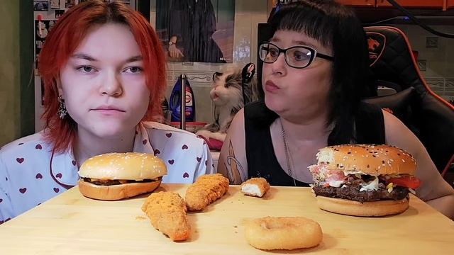 Мукбанг | BURGER KING. Ангус четыре сыра,Чизбургер,Луковые к