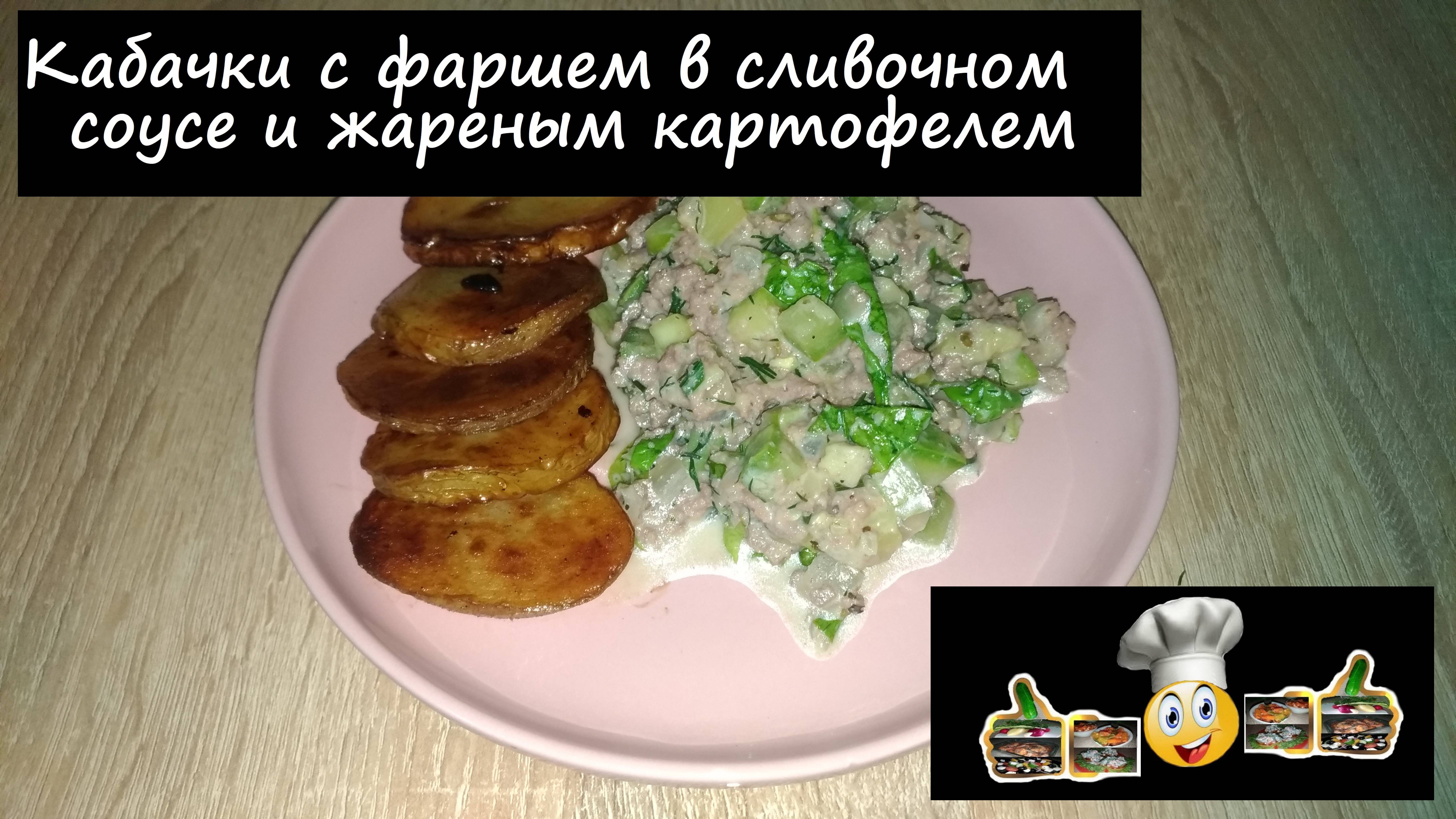 Кабачки с фаршем в сливочном соусе и жареным картофелем/На второе/Рецепт № 168