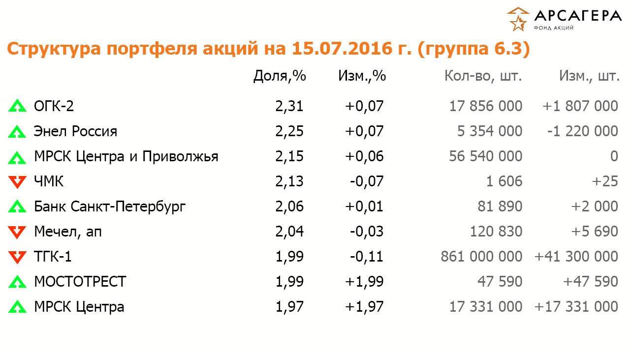 Видеопередача об операциях с активами фонда Арсагера - фонд акций за период с 17.06.16 по 01.07.16 портфель сча доходность рейтинги