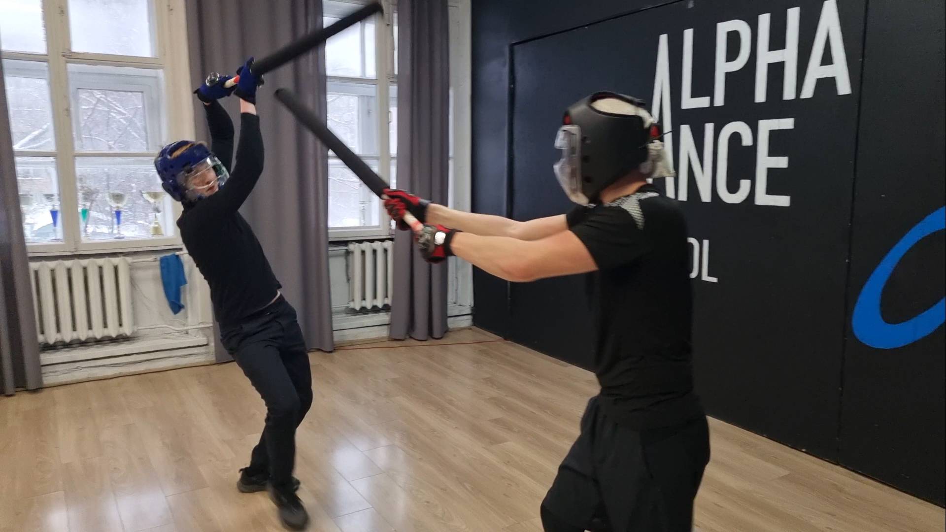 Спарринг на длинных круглых двуручных японских мечах чанбара катана в школе кэндзюцу Katana Club