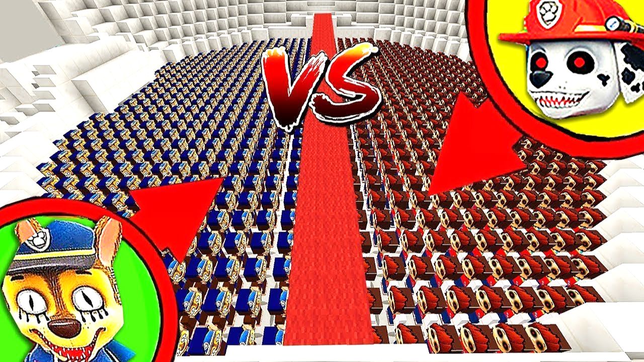 1000 РАЙДЕРОВ ПРОТИВ 1000 ГОНЩИКОВ ! БИТВА ЗА БАЗУ ЩЕНЯЧЕГО ПАТРУЛЯ - БАНАНЧИК МАЙНКРАФТ