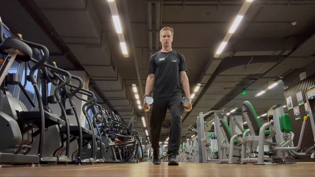 Выпады шагами с гантелями (Dumbbell Walking Lunge)