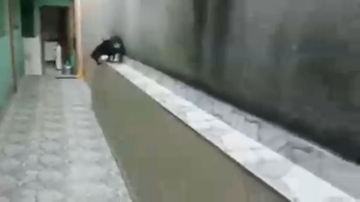 Собака на парапете дала задний ход