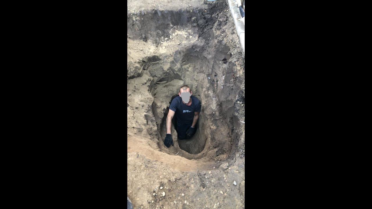 Дойдя до отметки глубины 3.20 метра всем стало ясно, что профиль, полученный георадаром показал верную картину геологии земельного участка. Рабочий, копавший яму, легко погрузил металлический штырь в центр ямы... Под ним была почти пустота... В контактах, что идут в заключительных титрах опечатка, правильный код 926.