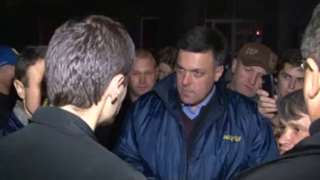 В Киеве милиция заблокировала лидера Всеукраинского объединения "Свобода" Олега Тягнибока, кобзаря Тараса Компаниченко и несколько свободовцев на территории киностудии Довженко.