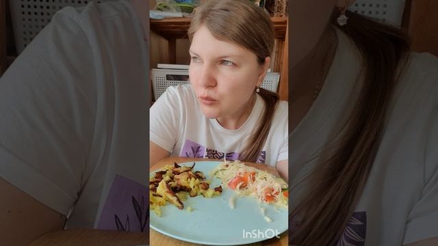 Жареная до хруста картошка и свежий овощной салат😋
