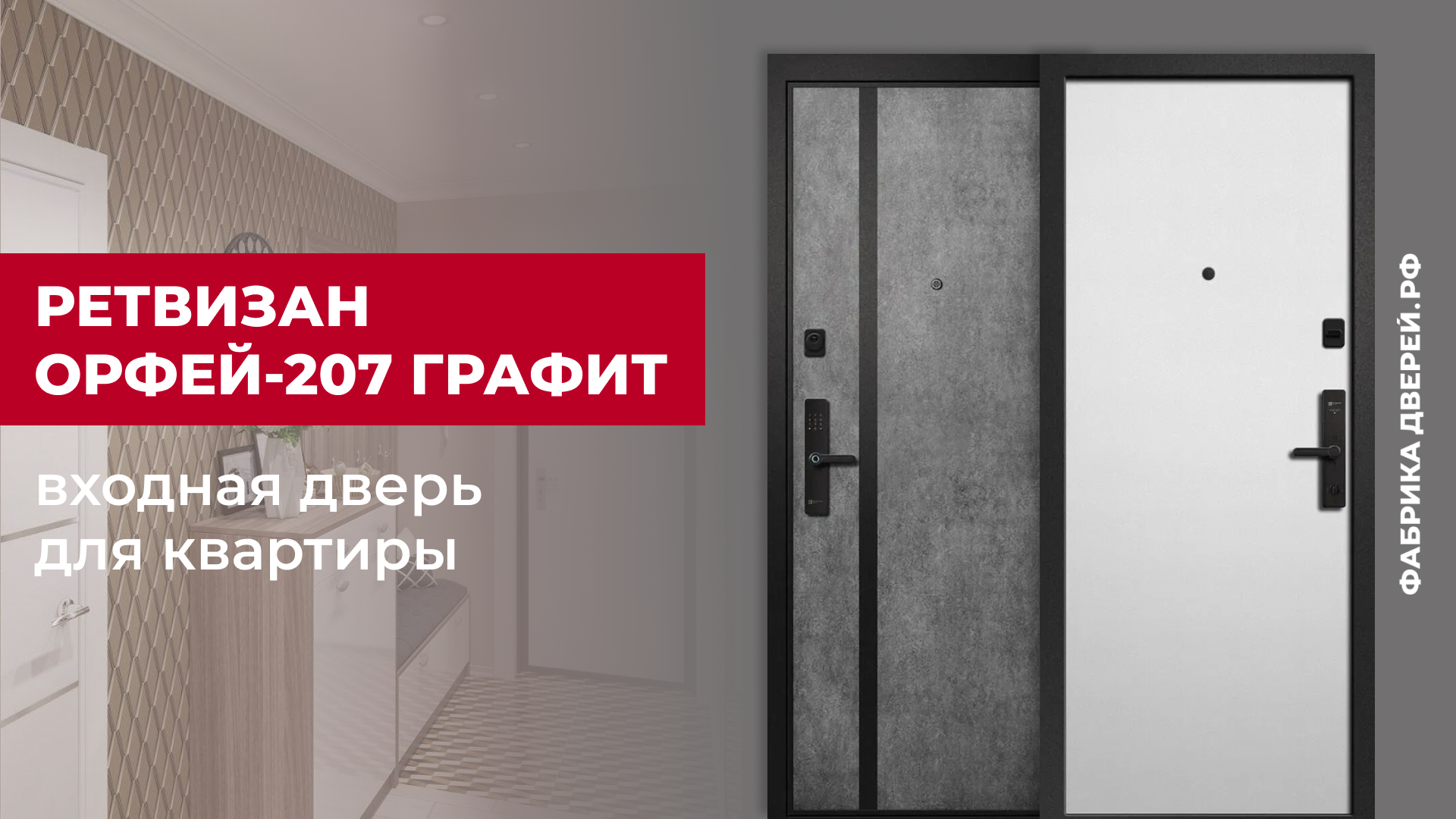 Представляем видеообзор от завода Ретвизан. Входную дверь производства Ретвизан модель Орфей-207 в отделке Графит рекомендуем для установки в квартиру. Снаружи гладкая панель МДФ 10 мм с черной вставкой, цвет панели "Верона графит". С внутренней стороны двери гладкая декоративная панель МДФ 10 мм в цвете "Квадро белый". Наполнитель полотна для шумо- и теплоизоляции - минеральная плита. Два контура уплотнения. В двери стоит верхний замок Гардиан - цилиндровый. Нижний замок - электронный биометрический Morgan K-18. Цвет фурнитуры - черный. В комплекте - глазок, ручка. Три петли на опорном подшипнике. Угол открывания 180 градусов. Глубина по коробу 120 мм, толщина полотна 80 мм. Продавец подберет материал для оформления проема со стороны дома. Всё об оформлении проема около входной двери читайте на нашем сайте фабрикадверей.рф _________________ Мы — компания #ФабрикаДверей, в нашей сети 132 современных магазина дверей по всей России. Для вас — дверной сервис полного цикла: добротная и качественная установка дверей. — двери от более 90 производителей — доступные цены на #ВходныеДвери и #МежкомнатныеДвери — скидки и акции — рассрочка и кредит 1. Консультация и подбор дверей в магазине, по телефону или интернет-магазине под ваши размеры и интерьер. Подбор фурнитуры. 2. Замер проёма под двери в удобное время. 3. Доставка дверей в удобное время до частного дома или до подъезда. 4. Подъем дверей на этаж. 5. Установка входных и межкомнатных дверей «под ключ» с гарантией. 6. Мы отвечаем за качество работы. На все двери и монтаж дверей даём гарантии. Фабрика дверей — покупайте двери без хлопот! Выбирайте: https://фабрикадверей.рф Задайте вопрос в группе ВКонтакте: https://vk.com/fddoors Узнайте больше о нас в Телеграме: https://t.me/fabrikadverey Прочтите полезную информацию в Одноклассниках: https://ok.ru/fddoors Читайте и смотрите канал Дзен: https://zen.yandex.ru/fabrikadverei #двери #купитьдвери #купитьвходныедвери #купитьмежкомнатныедвери #установкадверей #ремонт #интерьер #дизайн #дверивТомске #дверивКрасноярске #дверивНовосибирске