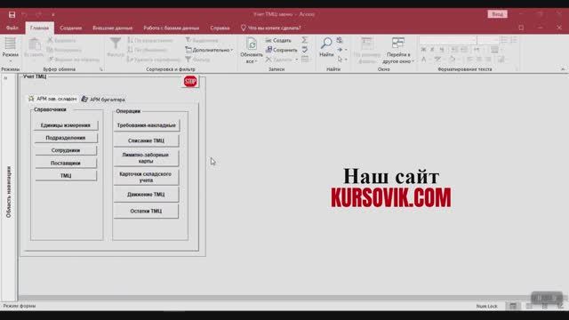 https://kursovik.com/programming/190422.html Автоматизированная информационная система учёта товарно-материальных ценностей (ТМЦ) на предприятии. АРМ заведующим складом. АРМ бухгалтера. Среда программирования: MS Access. Программа представляет собой базу данных по учету ТМЦ на предприятии. Автоматизированная система учёта товарно-материальных ценностей (АСУТМЦ). предназначена для автоматизации процессов учета движения товарно-материальных ценностей (ТМЦ). Реализованы 2 АРМ: АРМ зав складом и АРМ бухгалтера. Функции АРМ зав. складом: - оформление и учёт ТМЦ, - подготовка выписок требований-накладных на отпуск ТМЦ в производство, - учёт движения ТМЦ ( акт на списание ТМЦ), - формирование периодической и оперативной информации по движению и наличию ТМЦ, - ведение лимитно-заборных карт, карточек складского учета по номенклатуре ТМЦ. Функции АРМ бухгалтера: - оформление доверенностей, - формирование требований-накладных на отпуск ТМЦ, счёт-фактур и накладных на отпуск материалов на сторону, платежных поручений, инвентаризационной ведомости, ведомости на списание ТМЦ, - ведение книги покупок. Приобрести исходники(все файлы проекта) данной программы Вы можете, заполнив следующую форму: https://kursovik.com/programming/190422.html?camefrom=rutube#form Заказать отчёт(описание): https://kursovik.com/programming/190422.html?camefrom=rutube#pz_need Заказать модификацию: https://kursovik.com/uniform.html?modify=190422&camefrom=rutube Заказать новую программу: https://kursovik.com/programming_order.html?camefrom=rutube Задать вопрос автору: https://kursovik.com/programming/190422.html?camefrom=rutube#vopros Наш Телеграм-БОТ для поиска готовых работ по программированию https://t.me/kursovikcom_bot , в нашей базе более 5и тысяч готовых работ, для более эффективного поиска используйте наш Телеграм-БОТ. Список наших готовых работ по программированию: https://kursovik.com/progtopic.html?camefrom=rutube Разработка программ на заказ согласно Вашему заданию: https://kursovik.com/programming_order.html?camefrom=rutube Мы пишем программы практически на всех языках программирования, работаем с различными базами данных, выполняем как мелкие задачки, так и крупные проекты. Разрабатываем и запускаем в работу ЧАТ-БОТы. Обращайтесь - всегда будем рады Вам помочь! Если нужно переписать данную программу на другой язык программирования - обращайтесь - сделаем. Адрес нашего сайта: https://kursovik.com Наши контакты: https://kursovik.com/contacts.html Наша группа ВК: https://vk.com/kursovik (всем подписчикам скидка 5%) Наш Телеграм-канал: https://t.me/kursovik (всем подписчикам скидка 5%) Наш Дзен-канал: https://dzen.ru/kursovik (всем подписчикам скидка 5%) Наш RuTube-канал: https://rutube.ru/channel/41864889 (всем подписчикам скидка 5%) Наш YouTube-канал: https://youtube.com/@kursovik_com (всем подписчикам скидка 5%) (скидки не суммируются :-) #дипломнаяработа #базыданных #msaccess #программирование