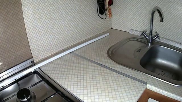 Удаляем старые, потёртые плинтуса со столешницы, Устанавливаем новые. Назначение плинтусов: декоративное и защита от попадания не только воды, но и любых продуктов и грязи между стеной и кухонным гарнитуром. В противном случае - это грязь и запахи.