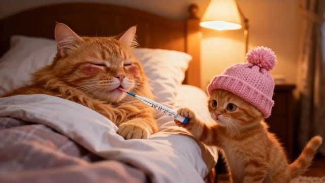 Джинджи помогает своей больной маме Трогательная история про кошку