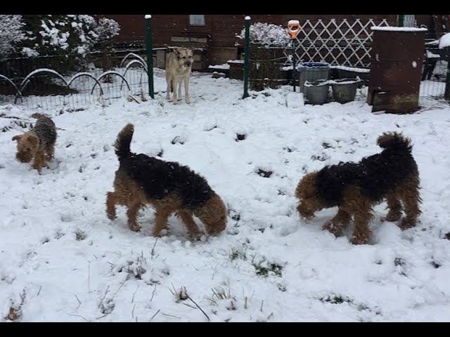 Снежное утро в деревне 12 ноября. Собаки и Кот на прогулке.