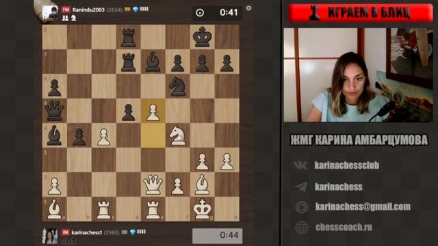 Рубрика: игровое обучение или учимся на своих ошибках. Блиц партия против мастера ФИДЕ, в которой возникло каталонское начало без d4, и получив перевес в центре, белые активизировали фигуры и начали атаку на короля. Стать спонсором канала и получить доступ к бонусам: https://boosty.to/karinachess Поддержать канал: https://www.donationalerts.com/r/karinachess1 Подписаться на мой канал: https://www.youtube.com/channel/UChor8u_hhgrjX2lt0QLzZHA?sub_confirmation=1 Обучающий курс "Пешечные структуры" http://bit.do/pawns-structures Рада приветствовать Вас на канале женского международного гроссмейстера, международного мастера Карины Амбарцумовой! Я - профессиональная шахматистка и тренер. Здесь вы сможете найти обучающие видеоуроки по шахматам, комментарии турниров, стримы моей игры в блиц шахматы. Подписывайтесь на мои странички в соц.сетях: ВКонтакте: https://vk.com/karinachessclub Telegram: https://t.me/karinachess Twitch: https://www.twitch.tv/karinachess1 Почта для связи: karinachess@mail.ru Мой сайт: http://chesscoach.ru/ #шахматы #КаринаАмбарцумова #урокишахмат