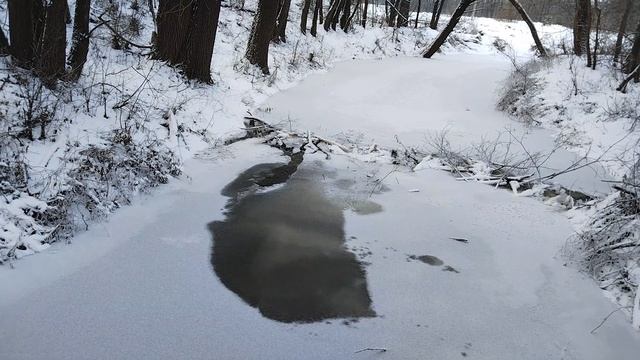 Речка и плотина бобров зимой.