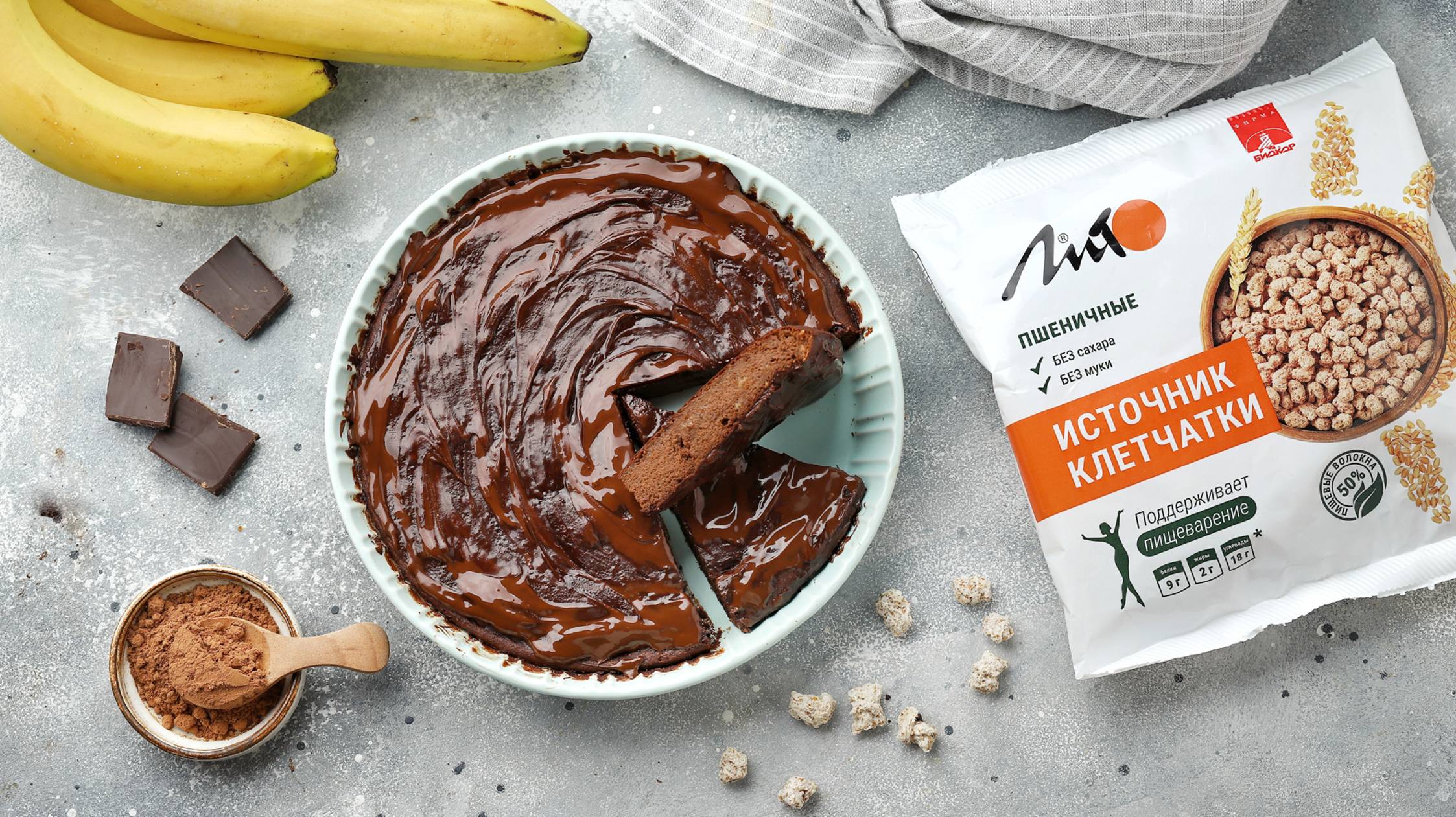 Шоколадно-банановый пирог с отрубями "Лито" без муки и сахара