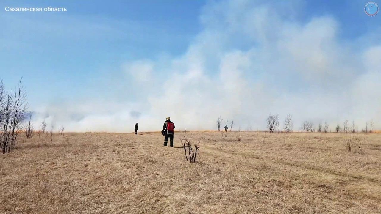 Возгорание сухой травы 29.04.2019. Сахалинская область