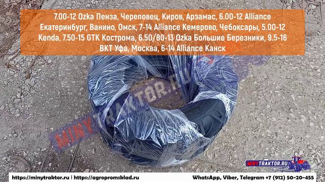 9.50-16 BKT Уфа, 5.00-12 Kenda Алексин, 7.50-15 Ozka Кострома, 7.00-12 Ozka Череповец, MinyTraktor