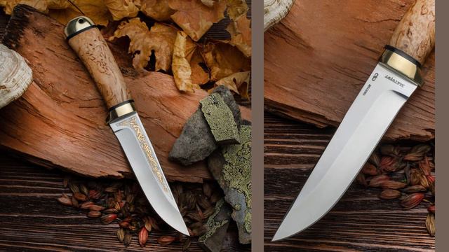 Серийные ножи бренда АиР в различных вариантах комплектации, разные материалы рукоятей и марки стали.