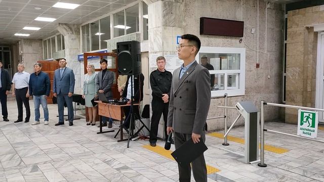 Гимн России на митинге посвящённому дню окончания Второй мировой войны в главном корпусе БГУ