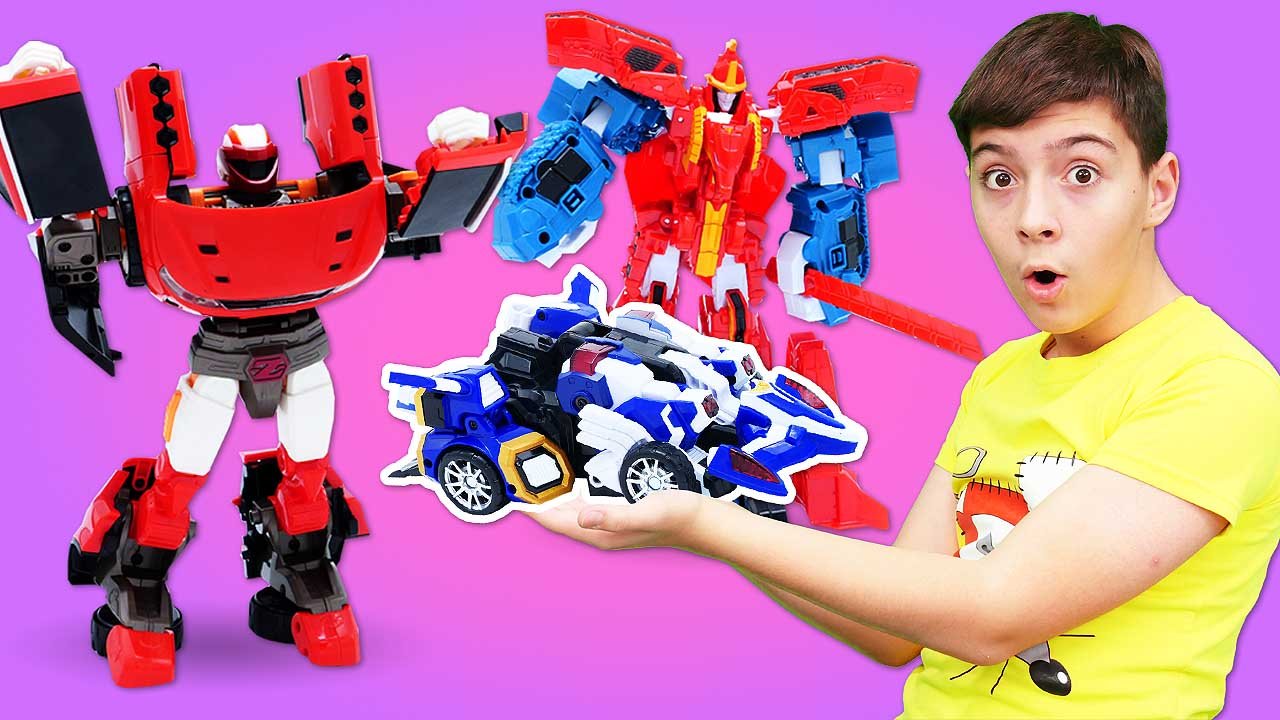 Видео игрушки машинки и гонки! роботы Тоботы на тренировке! Игры для детей с трансформерами!