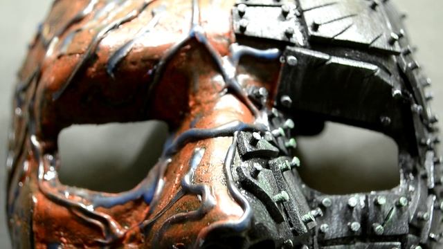 Изготовил маску ручной работы из пластика, и ева фоам. Наполовину маска светится в темноте.