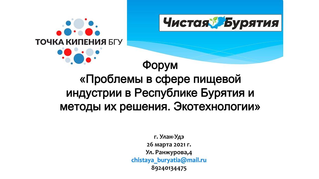Форум «Проблемы в сфере пищевой индустрии в Республике Бурятия и методы их решения. Экотехнологии».