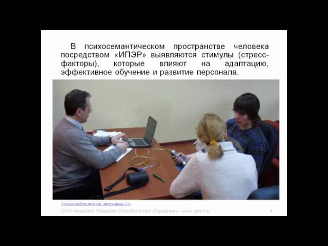 Много моих видео http://iper1k.ru/novosti.html При оценке, обучении, адаптации и развитии персонала, важным фактором является выявление осознаваемых и не осознаваемых стимулов (стресс-факторов), вызывающих понижение эффективности в работе, скорости адаптации и задержку развития компетентности персонала. Приборы для самопознания или для психологической консультации - http://www.iper1k.ru Техники саморазвития - психологическая консультация - http://www.osoznanie.biz Мой канал на youtube - https://www.youtube.com/user/Ivanovih808 --------- Подборка наших видео научных докладов по темам - спортивная психология - педагогика - самопознание - бизнес https://www.youtube.com/playlist?list=PLbNVCpO4w-QlmIzZmpEe8gqi9vSsDKw42 --------- Подборка видео-семинаров для людей, занимающихся саморазвитием и самопознанием. https://www.youtube.com/playlist?list=PLbNVCpO4w-Qk2m38hJNHIMBLvV5vT8Ap3 --------- Подборка для психологов, психотерапевтов, коуч, педагогам, медикам, социальным работникам - видео семинаров по проведению психодиагностики и психокоррекции нежелательных состояний у клиентов. https://www.youtube.com/playlist?list=PLbNVCpO4w-Ql_O5OIz6PANIWEHXdq0nGs --------- Подборка видео семинаров по межличностным взаимоотношениям, семейной жизни, воспитанию детей. https://www.youtube.com/playlist?list=PLbNVCpO4w-Qm5QjmKJqQ5HGLVeTSZaSM6 --------- Подборка для кадровиков, эйчаров, HR-специалистов, руководителей и собственников компаний - видео семинаров по отбору, проверке, обучению и управлению персоналом. https://www.youtube.com/playlist?list=PLbNVCpO4w-QnejSf2iD67U29zWeFIN912 --------- Подборка для спортсменов и тренеров - видео семинаров по спортивной психологии https://www.youtube.com/playlist?list=PLbNVCpO4w-QkZSP_MiMHns9xBPiNle6Lt --------- Все наши публикации в научных журналах, а также видео семинаров и мастер-классов, можно скачать по этой ссылке http://www.iper1k.ru/images/upload/00_publikasii_garmonii.pdf
