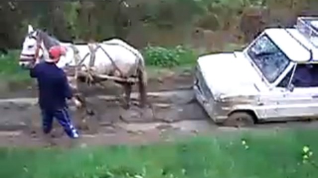 Спасает завязший в глине авто