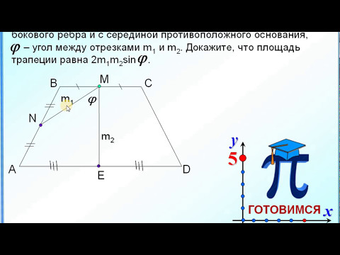 Пусть m₁ и m₂ – отрезки, соединяющие середину одного из оснований равнобедренной трапеции с серединой бокового ребра и с серединой противоположного основания, a – угол между отрезками m₁ и m₂. Докажите, что площадь трапеции равна 2m₁m₂sin a