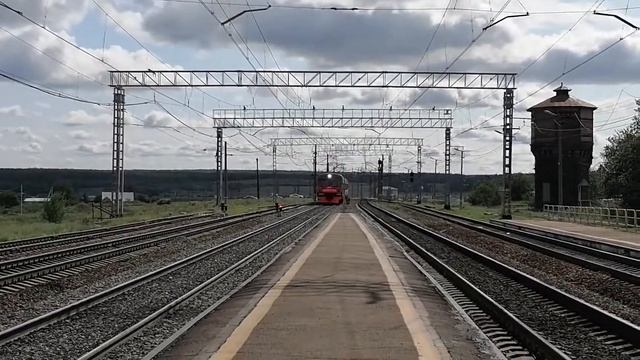 Электропоезд ЭД4М-0109 с пригородным поездом №6007 Челябинск—Кисегач прибывает на ст. Бишкиль