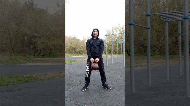 утро 07:30 после разминки - 30 минут два упражнения в сцепке не опуская гирю высокий мах - 3 раза выбросы - 3 раза по кругу, отдых по состоянию, гиря всегда в руках напоследок вис на турнике 60 секунд