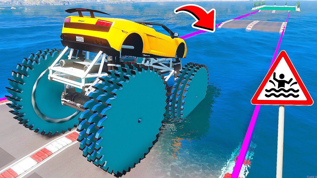 СМОЖЕТ ЛИ ГИГАНТСКАЯ ЛАМБОРГИНИ НА ПИЛАХ ПРОЕХАТЬ ГЛУБОКУЮ ЯМУ С ВОДОЙ В ГТА 5 МОДЫ - ЭКСПЕРИМЕНТЫ