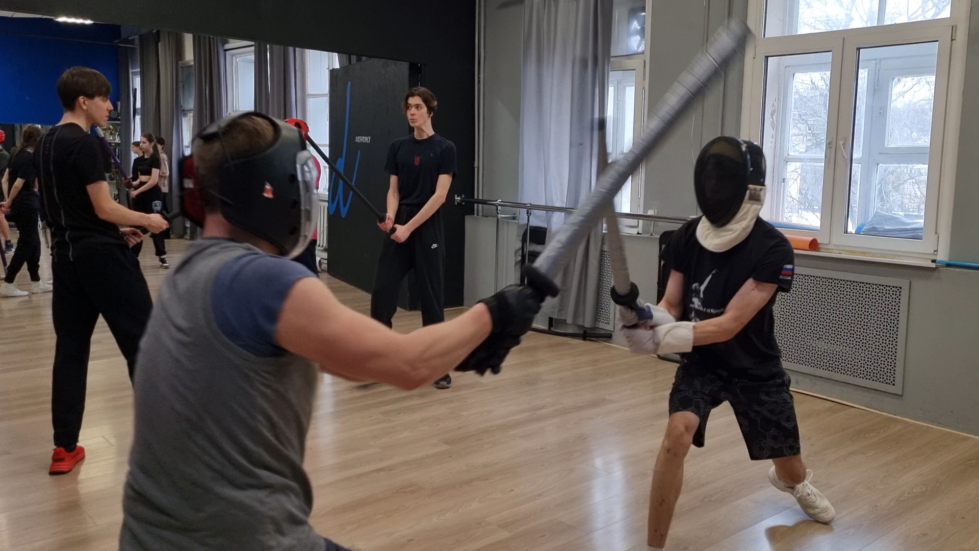 Японское фехтование мечом катана - спарринг в школе кендзюцу Katana Club на длинных чанбара тёкен