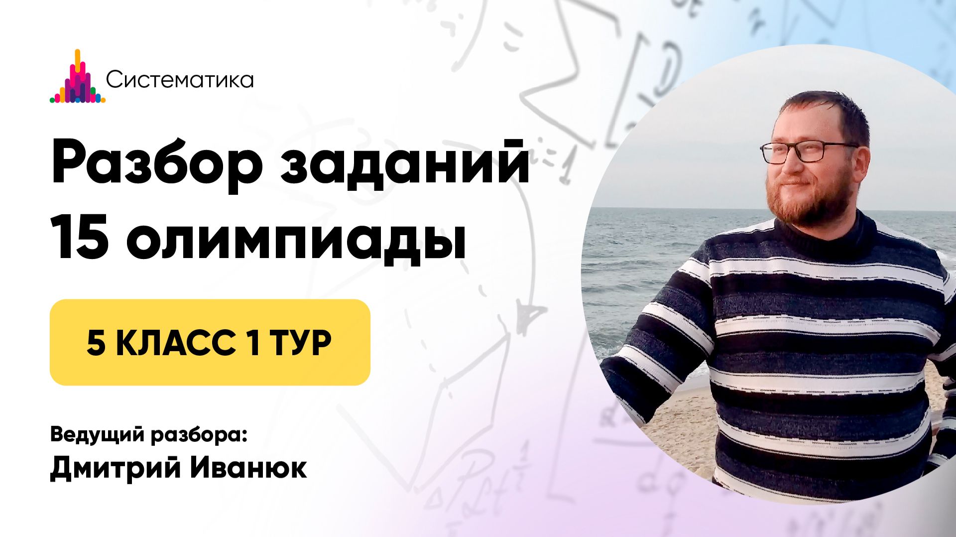 Разбор задач 1 тура 15 олимпиады по математике для 5 класса Записаться на очередную олимпиаду — https://systematika.org/olimpiada/math/ Онлайн-занятия в мини-группах По одному абонементу можно заниматься сразу в нескольких кружках. Олимпиадная математика для 1–9 классов — https://systematika.org/online-courses/live-math/ Шахматы для 1–9 классов — https://systematika.org/online-courses/chess/ ТРИЗ для 1–7 классов — https://systematika.org/online-courses/triz/ Биология для 3–7 классов — https://systematika.org/online-courses/biology/ Индивидуальные занятия Опытные преподаватели из лучших вузов России помогут достичь высоких результатов в обучении! Олимпиадная математика — https://systematika.org/online-courses/live-math-repetitor/ Школьная математика — https://systematika.org/online-courses/school-math-repetitor/ Шахматы — https://systematika.org/online-courses/chess-repetitor/ ТРИЗ — https://systematika.org/online-courses/triz-repetitor/ Биология — https://systematika.org/online-courses/biology-repetitor/ Химия — https://systematika.org/online-courses/chemistry-repetitor/ Физика — https://systematika.org/online-courses/physics-repetitor/ Курсы Выбирайте только те темы, которые интересны вам. Олимпиадная математика — https://systematika.org/items/matematika/ Программирование — https://systematika.org/items/programmirovanie/ Физика — https://systematika.org/items/fizika/ История — https://systematika.org/items/istoriya/ Шахматы — https://systematika.org/items/shahmaty/ Soft skills — https://systematika.org/items/soft-skills/ Более 150 курсов в записи и вживую на сайте — https://systematika.org/form/courses/