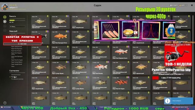 Поддержка донатом https://new.donatepay.ru/@1032463 Альтернативный донат https://www.donationalerts.com/r/kalyamba11 5536913964533059 карта Тинькоф Если стрим лагает,смотри стрим на трово https://trovo.live/s/Kalyamba_na_Ribalke Тг https://t.me/kalyamba_na_ribalke Мой ВК - https://vk.com/kalyantv НИК в игре kalyan11 НАШ ДС https://discord.gg/4ZzSQkQtsK Заказ водоема на 1 час - 500р ( весь стрим 2500р ) Модерка на канале 1300р ( каждая следующая на 100р больше) ✅Призы в рулетке "ЗОЛОТАЯ" 500р ✔ ЗОЛОТО ✔ ПРЕМ ✔ КАТУШКИ РАПТОР 40, ВЕНГИ, ТАЙГА, СИЛЬВЕР 80, И другие ✔ ПАЛКИ ПИЛКЕРНАЯ, ДОНКА МОРСКИЕ, ✔ РОД ПОД, СТУЛЬЯ ✅Призы в рулетке СТАНДАРТ : 100р ✔ катушкИ РАПТОР 40, ВЕНГИ, ТАЙГА, СИЛЬВЕР 80, И другие ✔ катушки 60 для медного ( ЭВИИ, НАТОРЫ, ГОЛДА, и тд) ✔ ПИЛКЕРНОЕ УДИЛИЩЕ КОРОЛЕВА ОКЕАНА ✔ Морское Донное удилище ✔ прем ( 3, 7, 30 дней) ✔ золото ( 1, 3, 5, 10, 20 ,50) ✔ билет на море ( 1, 3, 5 дней) ✔ голд наживка и др. ✅Призы в рулетке "СТАРТОВАЯ" 50р ✔ катушка Венга ✔ катушка "silver80" ✔ катушка "БЕЛЫЙ КАЛИБР" ✔ катушка "Черный калибр" ✔ катушка "Протон" ✔ катушка "Нарга 6000" ✔ Набор Фидерист и спинингист ✔ Карповик Фортуна ✔ фидерные удилища ✔ прем, золото, алкашка, наживки и тд P.s Рулетка это не казино, а награда за поддержку стримера. Вечный ТОП ПОДДЕРЖКИ (10.06.2025) 1. Леха сварной 214 572 2. Dimon_pokemonchik 127 034 3. Skreb79 103 061 4. Interceptor 96 230 5. FishRus86 82 500