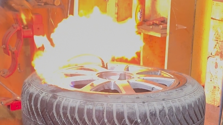 Шиномонтаж методом взрыва. Взрываем колесо и поехали.