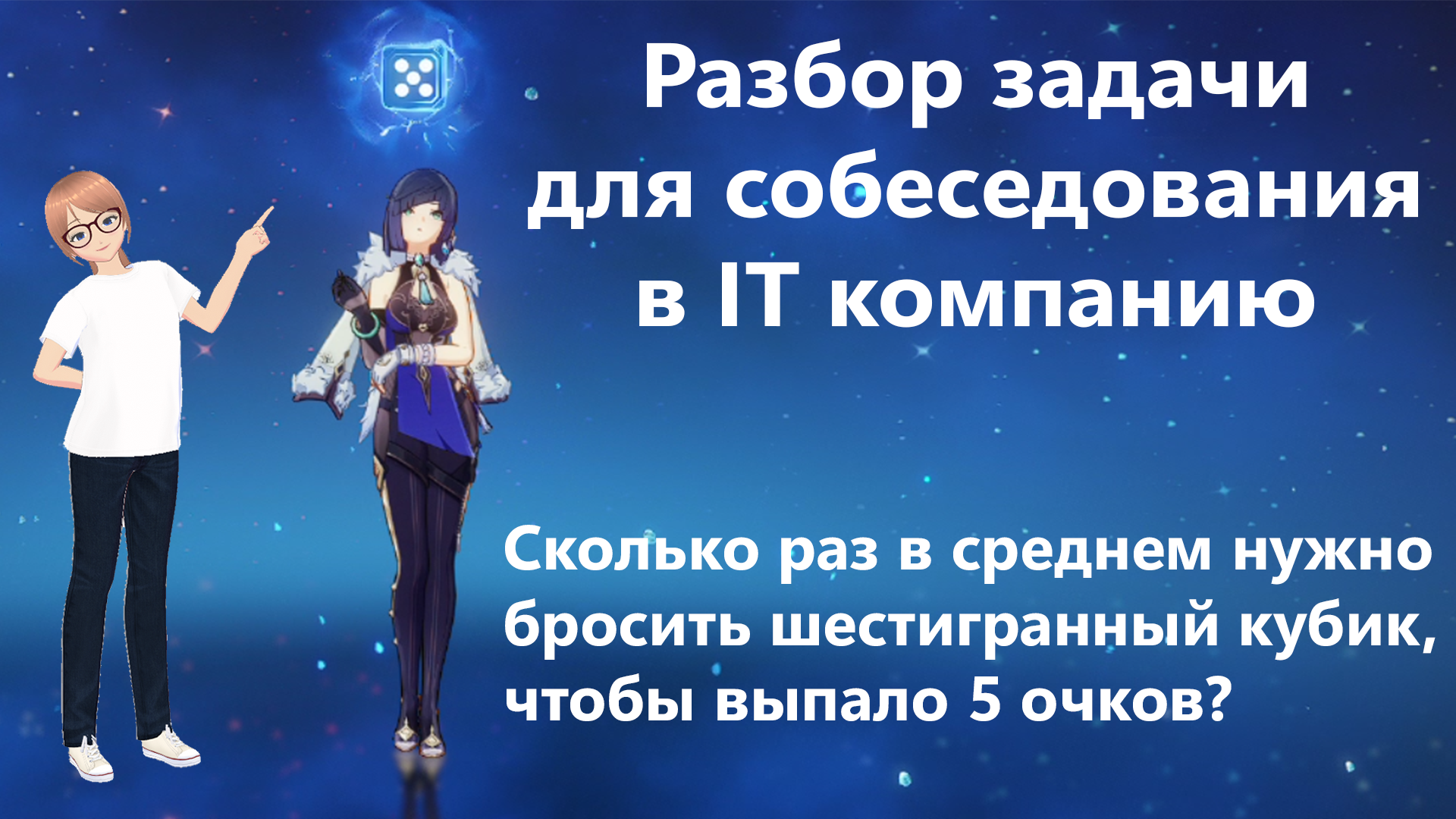 Недавно ко мне обратилась девушка, которая готовилась к собеседованию в IT компанию. Там очень любят давать задачи по теории вероятностей. Особенно важно знать различные распределения дискретных случайных величин. В итоге она успешно прошла 2 собеседования. Вот одна из задач, которые мы решали. Задача. Сколько раз в среднем нужно бросить шестигранный кубик, чтобы выпало число 5? #genshin #математика #теориявероятностей #собеседование #собеседованиенаработу