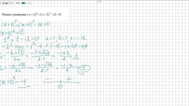 ОГЭ математика Задание 20 5 марта 2025 МА2490401 Решите уравнение (х+2)4(х+2)2-12=0