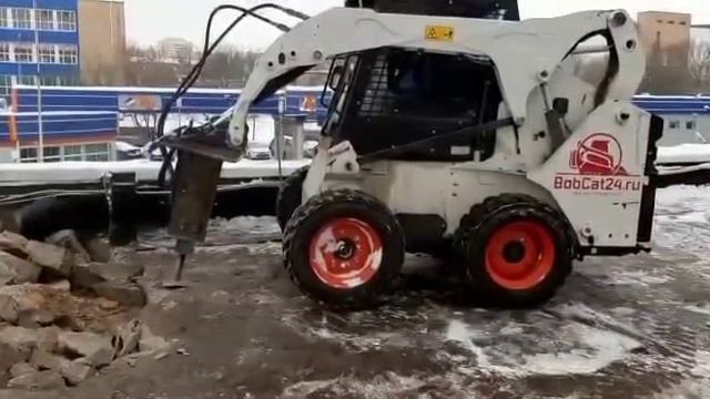 Гидромолот в работе на минипогрузчике BobCat