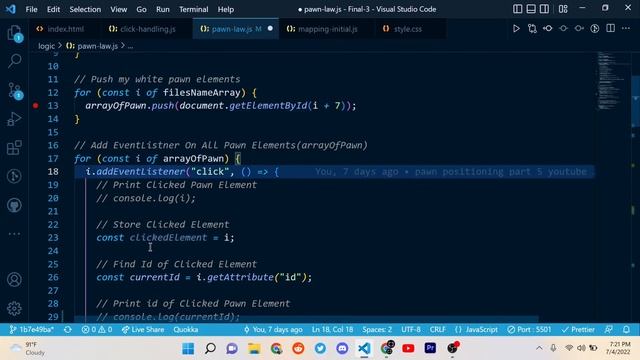 Create Chess game using HTML, CSS & Javascript! Tutorial in hindi! Part-8 Moving Pawn ?? #code