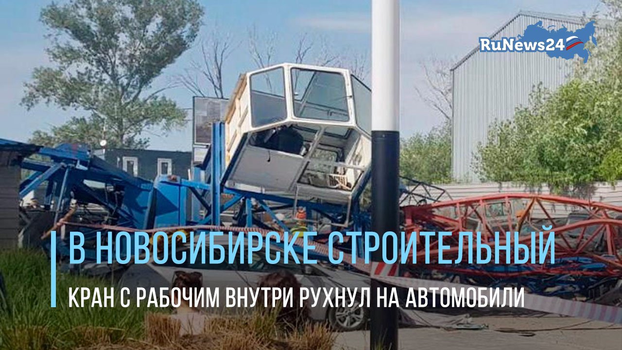 В Новосибирске строительный кран с рабочим внутри рухнул на автомобили