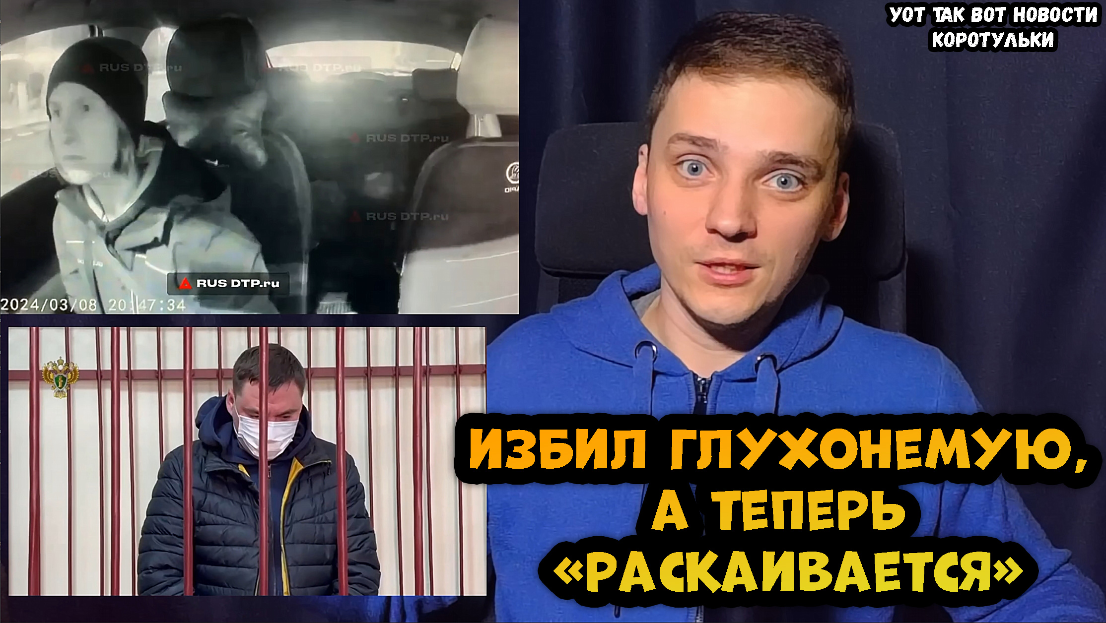 Поддержка автора► 2202 2063 9587 6621 Сбербанк https://www.donationalerts.com/r/pasha_king Телеграмм►https://t.me/PavelKorolevnews Плейлист со всеми коротульками► https://clck.ru/397uJf Плейлист со всеми полными УОТ ТАК ВОТ новостями► https://clck.ru/397uNA Канал на Дзене ►https://dzen.ru/id/5d4d089844742600ad04cd0e Канал с летсплеями и записями стримов ► https://dzen.ru/id/6501aa9dffb3f010e7d595cf Игровой Youtube канал►https://www.youtube.com/channel/UCwl8BkEZuKH4invGpj3QJzw/ В Подмосковье мужчина напал на глухонемую женщину-водителя такси Инцидент произошел 8 марта около 9 часов вечера в Дмитрове на улице Советской. 43-летний мужчина, который был пассажиром в автомобиле своей дочери, во время движения посчитал, что женщина, управлявшая такси, должна была уступить им дорогу. После того, как такси остановилось на остановке, мужчина вышел из машины и разбил стекло, а также ударил женщину-водителя кулаком в лицо. За рулем такси находилась 37-летняя многодетняя мать, инвалид 3-й группы по слуху из Сергиева Посада. Женщина четыре года работает в такси. В тот вечер она ехала за пассажиром в Дмитров. Конфликт начался возле перекрестка: мужчина посчитал, что женщина не пропустила внедорожник и подрезала его. После ударов мужчина убежал обратно в автомобиль и уехал, но через несколько минут вернулся и попытался уладить конфликт без полиции. Но свидетели происшествия уже вызвали полицейских. В полицию против нападавшего было подано заявление. Мужчину задержали. Возбуждено уголовное дело по ст. 213 ч. 1 п. «а» УК РФ «Хулиганство, совершенное с применением насилия к гражданам». Мужчину, избившего неслышащую девушку-таксиста в Дмитрове, заключили под стражу. Обвиняемый признал себя виновным, но просил отправить его под домашний арест. На девушку-водителя мужчина набросился, потому что решил, что она якобы должна была уступить проезд его дочери, в машине которой он и сидел.