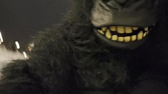 Веселая горилла пришла на каток на реке. Детворе радость.