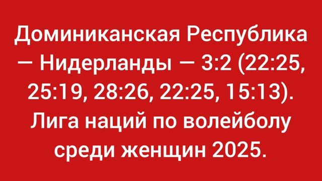 Доминиканская Республика — Нидерланды — 3:2 (22:25, 25:19, 28:26, 22:25, 15:13). Лига наций 2025.