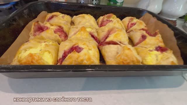 Вкуснейшие конвертики из слоёного теста с творогом и малиной!Puff pastry envelopes!