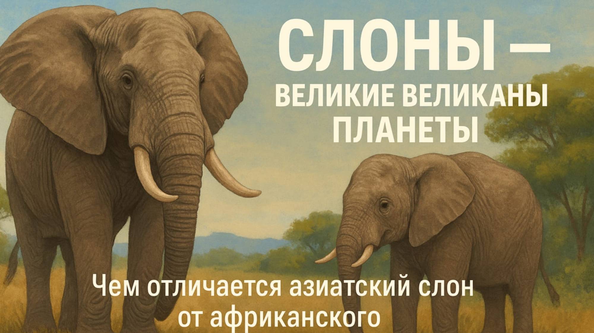 🐘 Слоны — великие великаны планеты! В этом видео вы узнаете, чем отличаются азиатские и африканские слоны: от формы ушей и строения хобота до поведения и интеллекта. Мы расскажем о жизни этих удивительных животных, их эмоциях, памяти, социальной структуре и роли в природе. Вы увидите, почему слоны считаются одними из самых умных существ на Земле — и как люди сегодня помогают сохранить этих добрых гигантов. ✨ Погрузитесь в мир слонов — сильных, добрых и удивительно разумных.