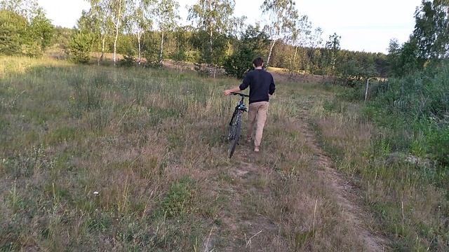 Пробираемся рядом с горой из песка на велосипедах на водоеме Карпятник 2